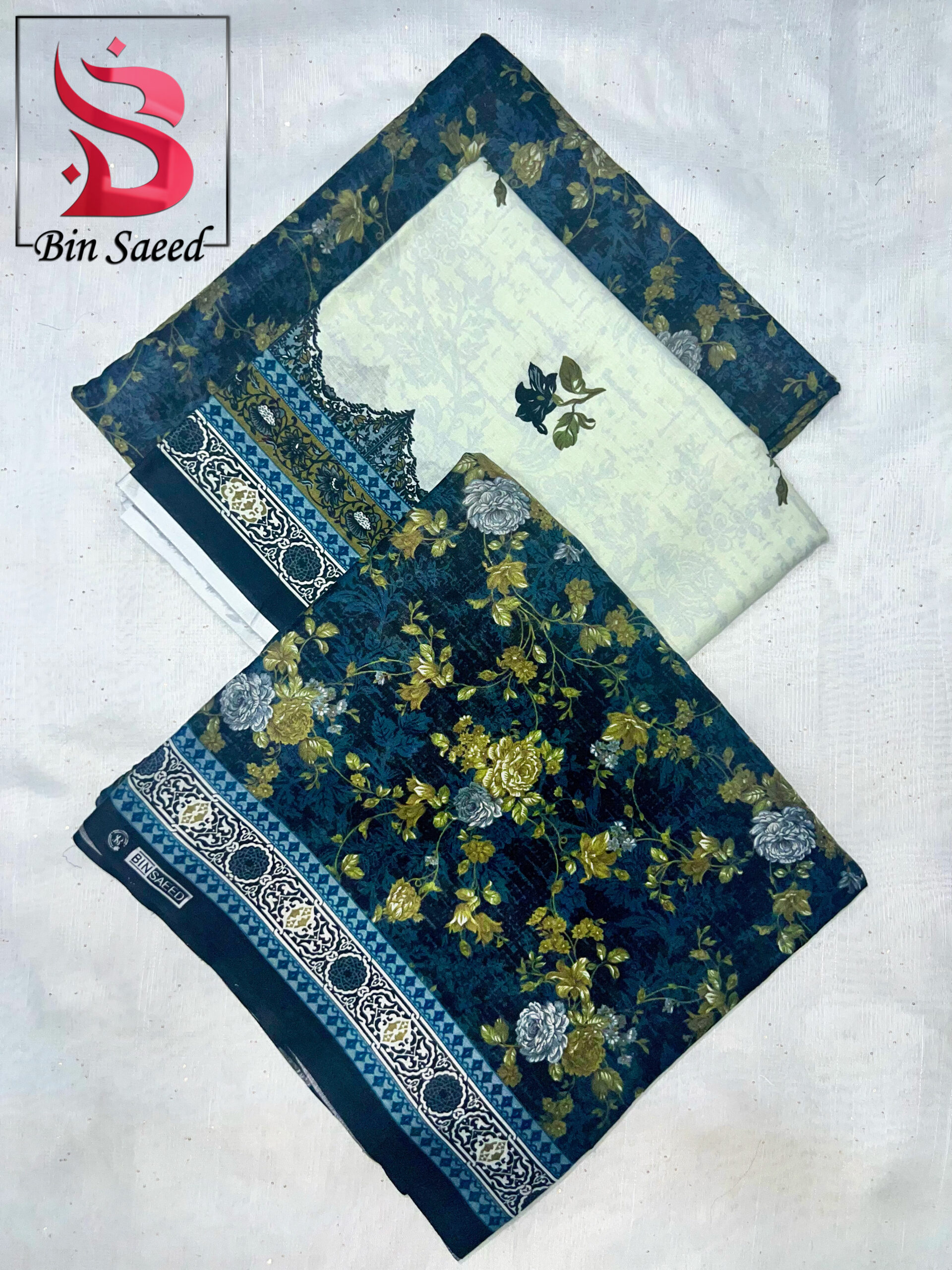 Step into elegance with this beautifully crafted suit from Bin Saeed, designed to bring out timeless grace and modern charm. Made from premium quality lawn fabric, this outfit features a stunning printed shirt paired with a perfectly matching trouser, creating a complete and sophisticated look. The design reflects fine detailing, vibrant colors, and a luxurious feel that makes it ideal for both casual wear and semi-formal occasions.
