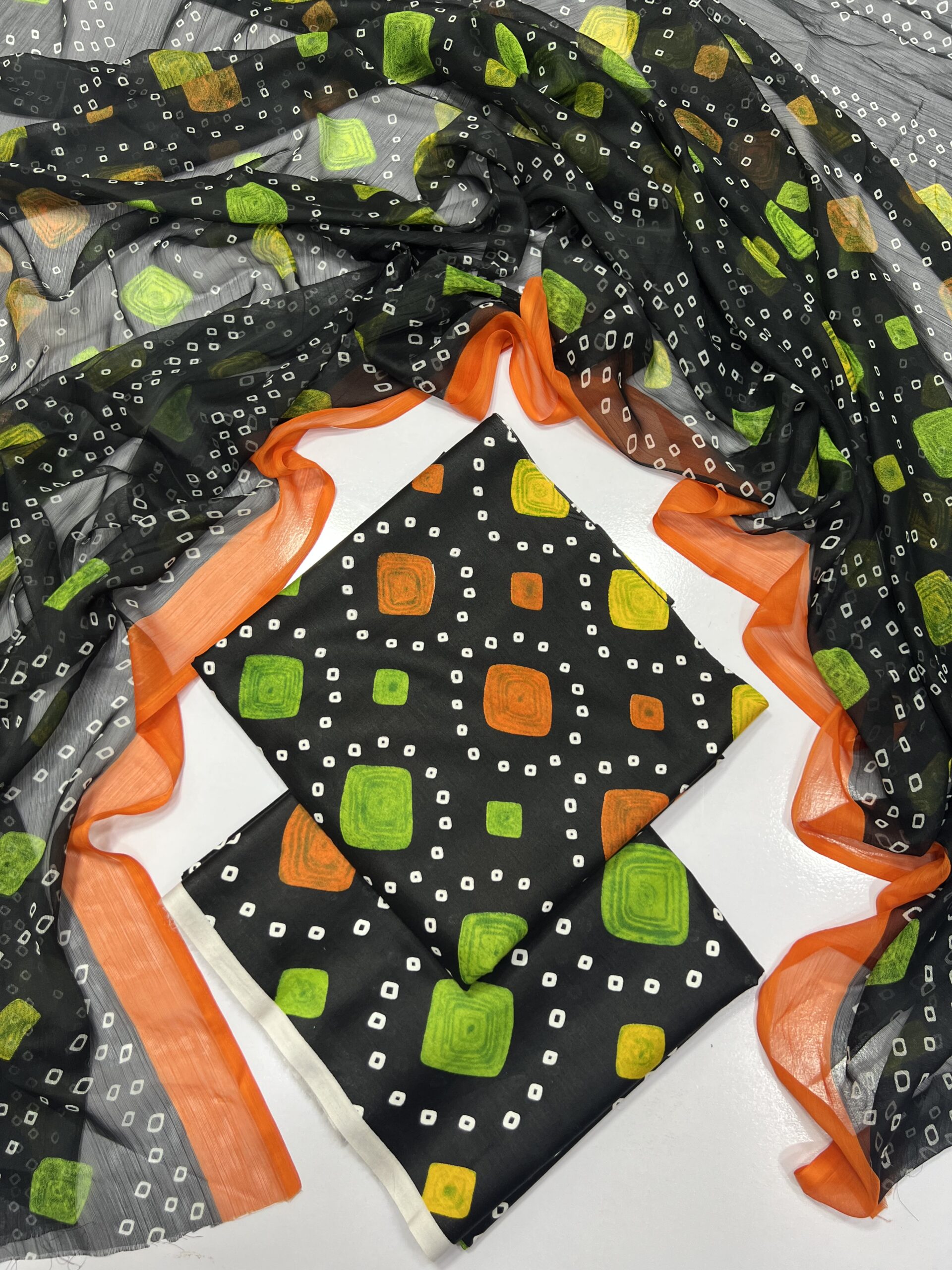 Elegance ka naya naam — Chunari Black! Is khubsurat outfit mein classic black base par delicate chunari-inspired design aapko dega ek graceful aur timeless look. Soft fabric, fine detailing aur perfectly balanced print isay banata hai har occasion ke liye perfect choice — chahe casual gathering ho ya festive event.
